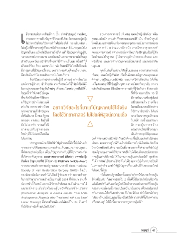 จากสมาคมศัลยกรรมปลกผมนานาชาติ (International ในความสาเร็จ แต่ท�าให้ผู้มีปัญหาเรื่องผมยินดีกับทางออกใหม่