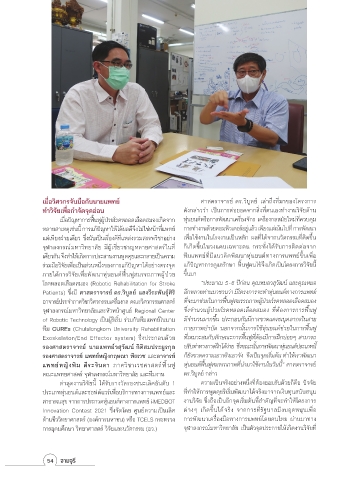 ทีม CUREs (Chulalongkorn University Rehabilitation กายภาพบาบด นอกจากนันการใช้ห่นยนต์ช่วยในการฟื้นฟ ู